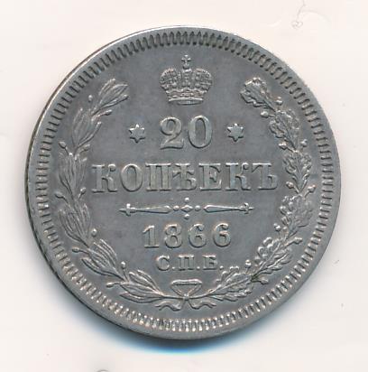 Лицевая сторона — гербовый орел, оборотная —обозначение номинала (20 копеекъ), окруженное венком из лавровой и дубовой ветвей и дата.