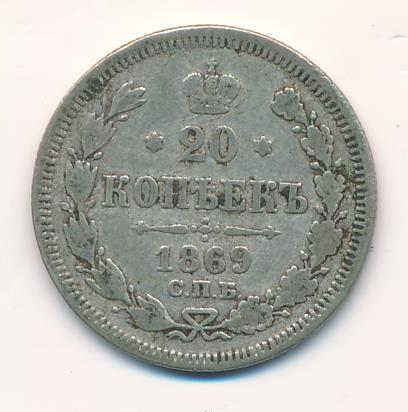 Лицевая сторона — гербовый орел, оборотная —обозначение номинала (20 копеекъ), окруженное венком из лавровой и дубовой ветвей и дата.
