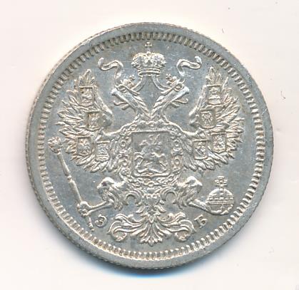 Лицевая сторона — гербовый орел, оборотная —обозначение номинала (20 копеекъ), окруженное венком из лавровой и дубовой ветвей и дата.
