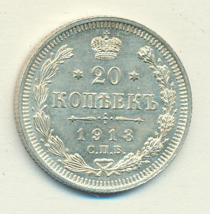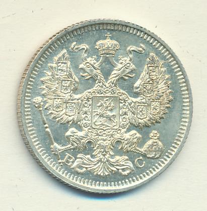 Лицевая сторона — гербовый орел, оборотная —обозначение номинала (20 копеекъ), окруженное венком из лавровой и дубовой ветвей и дата.