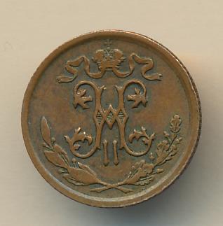 Лицевая сторона — вензель Александра II в венке из лавровой и дубовой ветвей; оборотная — обозначение номинала (1/2 копейки) и дата. Нормативный вес — 1,64 грамма, гурт рубчатый.