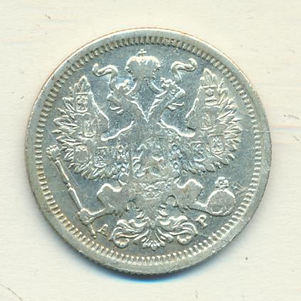 Лицевая сторона — гербовый орел, оборотная —обозначение номинала (20 копеекъ), окруженное венком из лавровой и дубовой ветвей и дата.