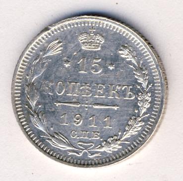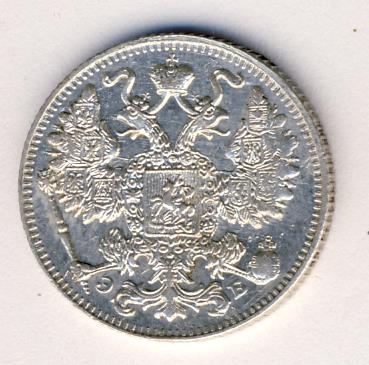 Лицевая сторона — гербовый орел, оборотная —обозначение номинала (15 копеекъ), окруженное венком из лавровой и дубовой ветвей и дата.