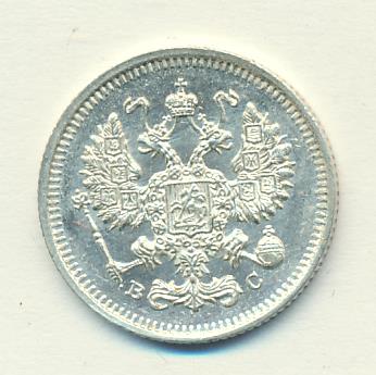 Лицевая сторона — гербовый орел, оборотная —обозначение номинала (10 копеекъ), окруженное венком из лавровой и дубовой ветвей и дата.