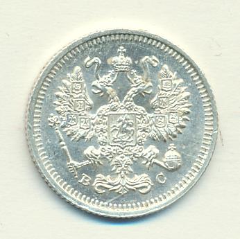 Лицевая сторона — гербовый орел, оборотная —обозначение номинала (10 копеекъ), окруженное венком из лавровой и дубовой ветвей и дата.