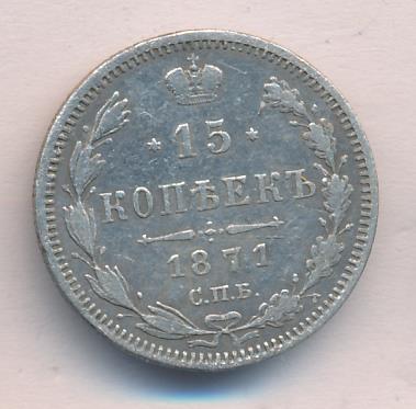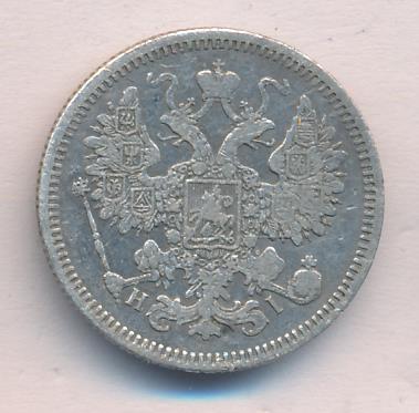 Лицевая сторона — гербовый орел, оборотная —обозначение номинала (15 копеекъ), окруженное венком из лавровой и дубовой ветвей и дата.