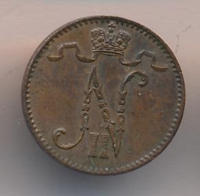 Лицевая сторона — вензель Александра II, оборотная — номинал (1 PENNIA) и дата. Нормативный вес — 1,28 грамма, гурт гладкий.