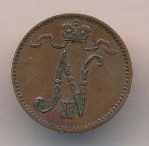 Лицевая сторона — вензель Александра II, оборотная — номинал (1 PENNIA) и дата. Нормативный вес — 1,28 грамма, гурт гладкий.