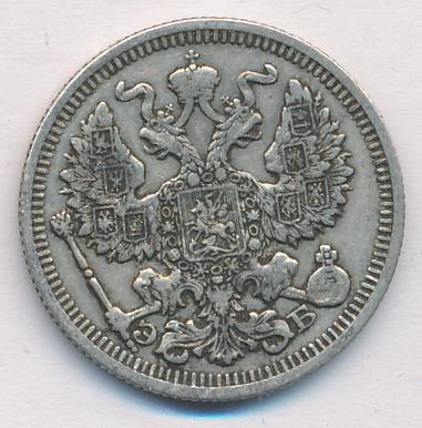 Лицевая сторона — гербовый орел, оборотная —обозначение номинала (20 копеекъ), окруженное венком из лавровой и дубовой ветвей и дата.