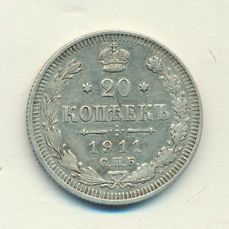 Лицевая сторона — гербовый орел, оборотная —обозначение номинала (20 копеекъ), окруженное венком из лавровой и дубовой ветвей и дата.