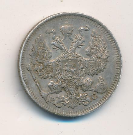 Лицевая сторона — гербовый орел, оборотная —обозначение номинала (20 копеекъ), окруженное венком из лавровой и дубовой ветвей и дата.