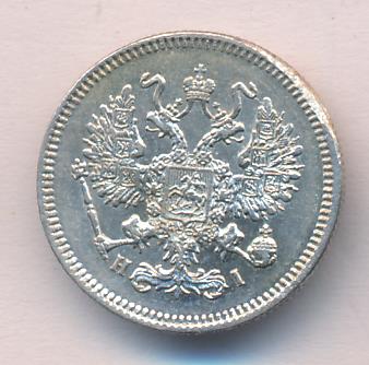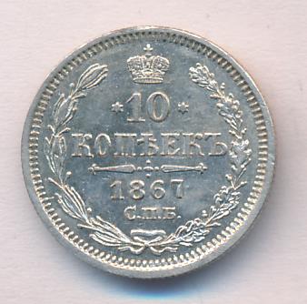 Лицевая сторона — гербовый орел, оборотная —обозначение номинала (10 копеекъ), окруженное венком из лавровой и дубовой ветвей и дата.