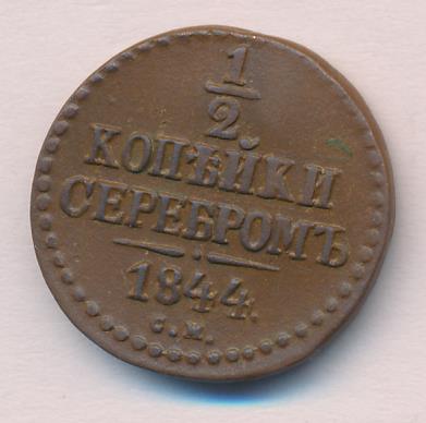 На новых монетах равенство серебряному курсу указано прямо в номинале: «1/2 КОПЕЙКИ СЕРЕБРОМ». Указ об их выпуске следует 6 сентября 1840 года («О новой медной монете на серебро 16-рублевого в пуде достоинства»). Массовая чеканка началось за год до этого на Екатеринбургском (знак ЕМ) и Сузунском (знак СМ) дворах. В качестве временной меры в 1840-1843 годах к ним подключается Ижорский завод (знак СПМ). С 1844 года после «значительного скопления медной монеты в народном обращении» в Екатеринбурге производство прекращается, а в Сузуне сокращается. Варшавский двор (знак MW), получив разрешение на выпуск общегосударственной монеты, успел отчеканить ее лишь в небольшом количестве в 1848 году.