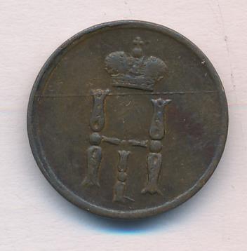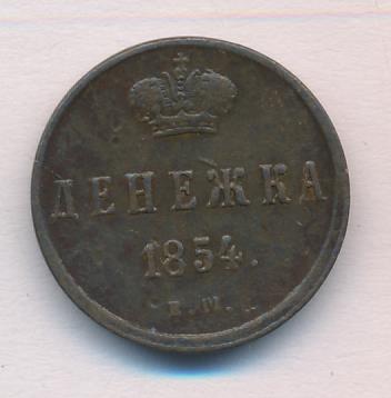 Лицевая сторона — вензель Николая I, оборотная — обозначение номинала (денежка) и дата. Нормативный вес — 2,56 грамма, гурт гладкий.