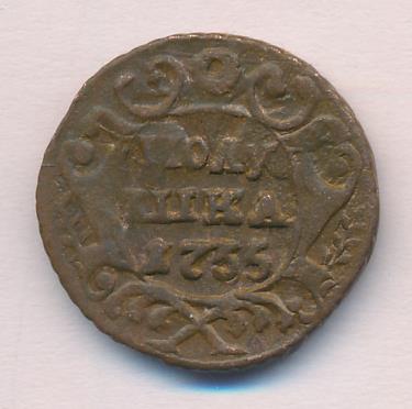 С 1730 года, как и 30 лет назад, медь возвращает себе статус разменных долей серебряной копейки — печатаются только денги и полушки. Указ от 22 декабря 1730 года регламентирует их выпуск на 10 рублей из пуда меди. Петровские копейки 20-рублевой стопы перечеканиваются в денги, а копейки Петра II 40-рублевой стопы — в полушки.