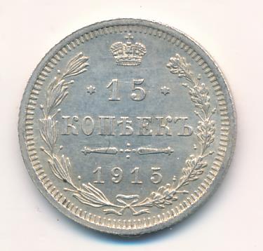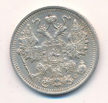 Лицевая сторона — гербовый орел, оборотная —обозначение номинала (15 копеекъ), окруженное венком из лавровой и дубовой ветвей и дата.