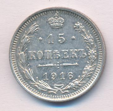 Лицевая сторона — гербовый орел, оборотная —обозначение номинала (15 копеекъ), окруженное венком из лавровой и дубовой ветвей и дата.