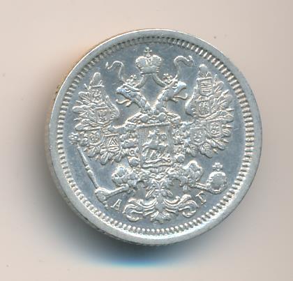 Лицевая сторона — гербовый орел, оборотная —обозначение номинала (15 копеекъ), окруженное венком из лавровой и дубовой ветвей и дата.