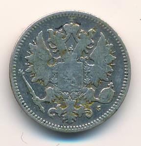 Лицевая сторона — российский двуглавый орел с гербом Великого княжества Финляндского на груди, оборотная — номинал и дата в венке из дубовых листьев. Проба — 750, нормативный вес — 1,27 грамма, гурт рубчатый.