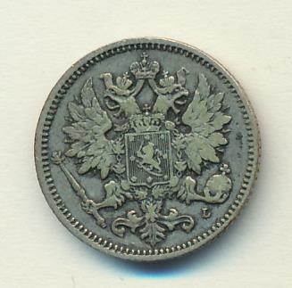 Лицевая сторона — российский двуглавый орел с гербом Великого княжества Финляндского на груди, оборотная — номинал и дата в венке из дубовых листьев. Проба — 750, нормативный вес — 1,27 грамма, гурт рубчатый.