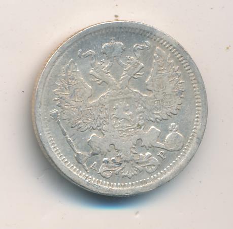 Лицевая сторона — гербовый орел, оборотная —обозначение номинала (20 копеекъ), окруженное венком из лавровой и дубовой ветвей и дата.