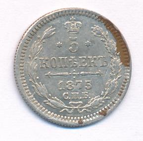 Лицевая сторона — гербовый орел, оборотная —обозначение номинала (5 копеекъ), окруженное венком из лавровой и дубовой ветвей и дата.