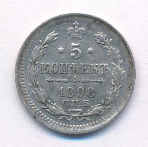 Лицевая сторона — гербовый орел, оборотная —обозначение номинала (5 копеекъ), окруженное венком из лавровой и дубовой ветвей и дата.