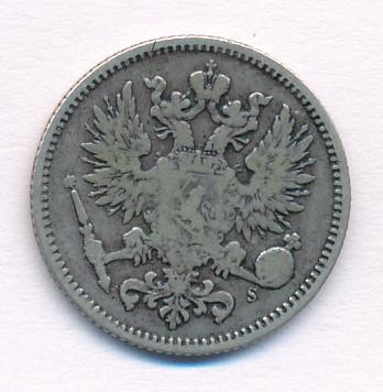 Лицевая сторона — российский двуглавый орел с гербом Великого княжества Финляндского на груди, оборотная — номинал и дата в венке из дубовых листьев. Проба — 750, нормативный вес — 2,55 грамма, гурт рубчатый.