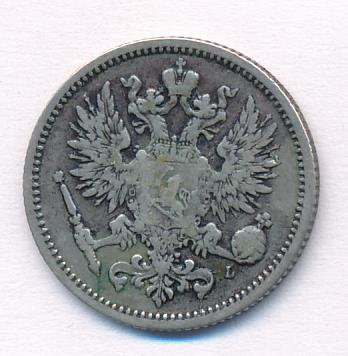 Лицевая сторона — российский двуглавый орел с гербом Великого княжества Финляндского на груди, оборотная — номинал и дата в венке из дубовых листьев. Проба — 750, нормативный вес — 2,55 грамма, гурт рубчатый.