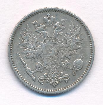 Лицевая сторона — российский двуглавый орел с гербом Великого княжества Финляндского на груди, оборотная — номинал и дата в венке из дубовых листьев. Проба — 750, нормативный вес — 2,55 грамма, гурт рубчатый.
