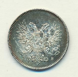 Лицевая сторона — российский двуглавый орел с гербом Великого княжества Финляндского на груди, оборотная — номинал и дата в венке из дубовых листьев. Проба — 750, нормативный вес — 1,27 грамма, гурт рубчатый.