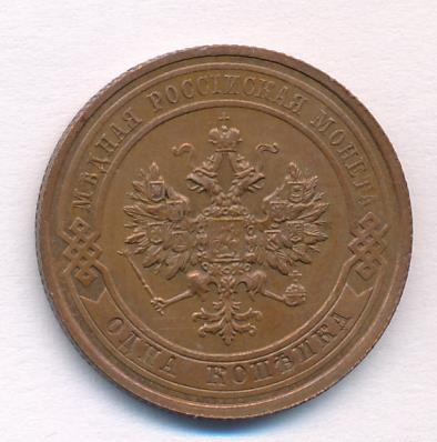Лицевая сторона — двуглавый орел, надпись МЕДНАЯ РОССIЙСКАЯ МОНЕТА и обозначение номинала (одна копейка); оборотная — обозначение номинала (1 копейка) в бусовом ободке и дата. Нормативный вес — 3,28 грамма, гурт рубчатый.