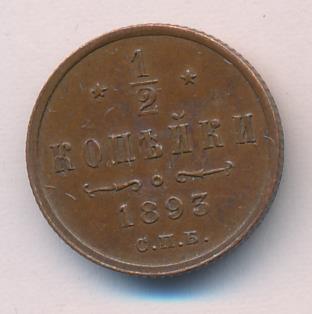 Лицевая сторона — вензель Александра II в венке из лавровой и дубовой ветвей; оборотная — обозначение номинала (1/2 копейки) и дата. Нормативный вес — 1,64 грамма, гурт рубчатый.