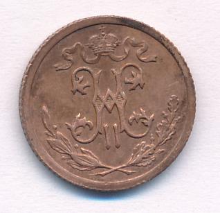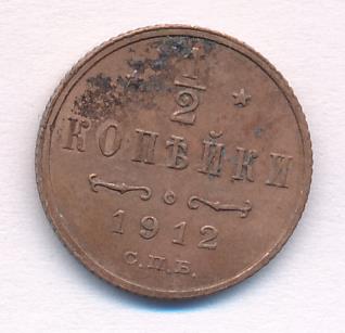 Лицевая сторона — вензель Александра II в венке из лавровой и дубовой ветвей; оборотная — обозначение номинала (1/2 копейки) и дата. Нормативный вес — 1,64 грамма, гурт рубчатый.