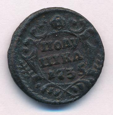 С 1730 года, как и 30 лет назад, медь возвращает себе статус разменных долей серебряной копейки — печатаются только денги и полушки. Указ от 22 декабря 1730 года регламентирует их выпуск на 10 рублей из пуда меди. Петровские копейки 20-рублевой стопы перечеканиваются в денги, а копейки Петра II 40-рублевой стопы — в полушки.