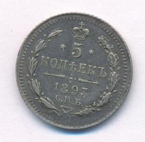 Лицевая сторона — гербовый орел, оборотная —обозначение номинала (5 копеекъ), окруженное венком из лавровой и дубовой ветвей и дата.