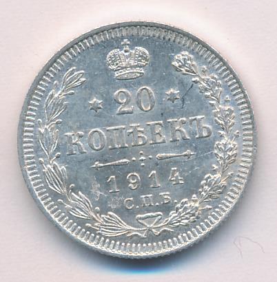 Лицевая сторона — гербовый орел, оборотная —обозначение номинала (20 копеекъ), окруженное венком из лавровой и дубовой ветвей и дата.