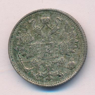 Лицевая сторона — гербовый орел, оборотная —обозначение номинала (15 копеекъ), окруженное венком из лавровой и дубовой ветвей и дата.