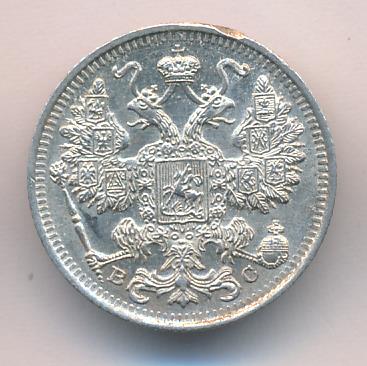 Лицевая сторона — гербовый орел, оборотная —обозначение номинала (15 копеекъ), окруженное венком из лавровой и дубовой ветвей и дата.