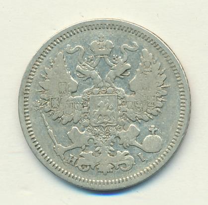 Лицевая сторона — гербовый орел, оборотная —обозначение номинала (20 копеекъ), окруженное венком из лавровой и дубовой ветвей и дата.