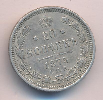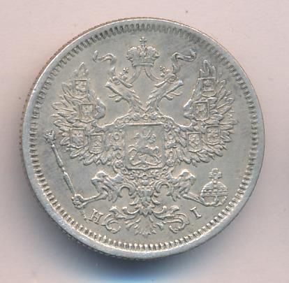 Лицевая сторона — гербовый орел, оборотная —обозначение номинала (20 копеекъ), окруженное венком из лавровой и дубовой ветвей и дата.