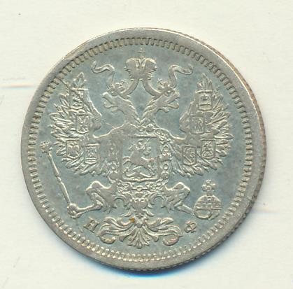 Лицевая сторона — гербовый орел, оборотная —обозначение номинала (20 копеекъ), окруженное венком из лавровой и дубовой ветвей и дата.