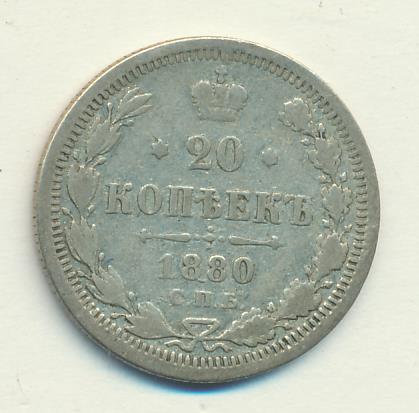 Лицевая сторона — гербовый орел, оборотная —обозначение номинала (20 копеекъ), окруженное венком из лавровой и дубовой ветвей и дата.