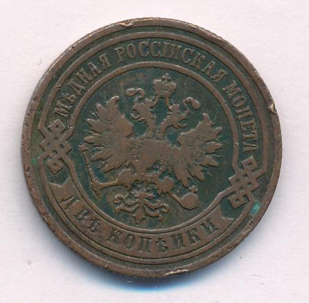 Лицевая сторона — двуглавый орел, надпись МЕДНАЯ РОССIЙСКАЯ МОНЕТА и обозначение номинала (две копейки); оборотная — обозначение номинала (2 копейки) в бусовом ободке и дата. Нормативный вес — 6,55 грамма, гурт рубчатый.