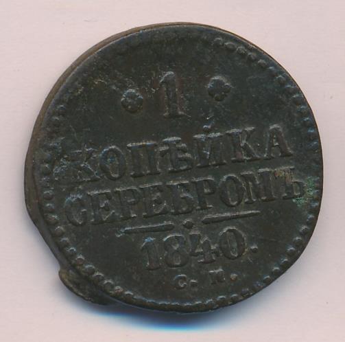 На новых монетах равенство серебряному курсу указано прямо в номинале: «1 КОПЕЙКА СЕРЕБРОМ». Указ об их выпуске следует 6 сентября 1840 года («О новой медной монете на серебро 16-рублевого в пуде достоинства»). Массовая чеканка началось за год до этого на Екатеринбургском (знак ЕМ) и Сузунском (знак СМ) дворах. В качестве временной меры в 1840-1843 годах к ним подключается Ижорский завод (знак СПМ). С 1844 года после «значительного скопления медной монеты в народном обращении» в Екатеринбурге производство прекращается, а в Сузуне сокращается.