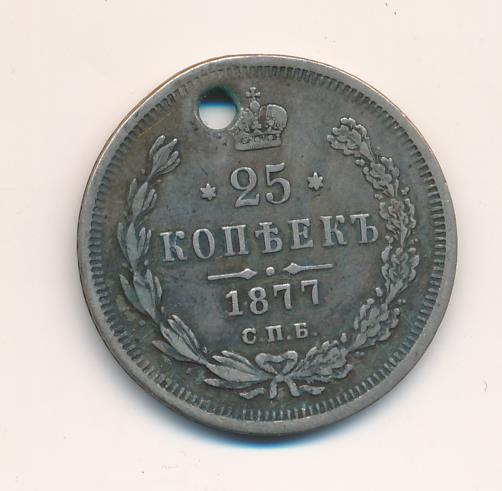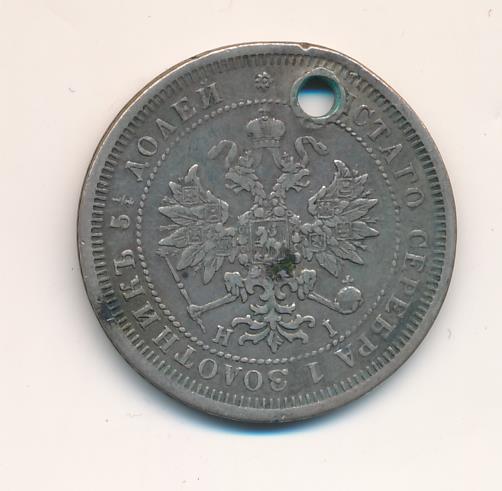 Лицевая сторона — гербовый орел и надпись «ЧИСТОГО СЕРЕБРА 1 ЗОЛОТНИКЪ 5 ДОЛЕЙ», оборотная —обозначение номинала (25 копеекъ), окруженное венком из лавровой и дубовой ветвей и дата.