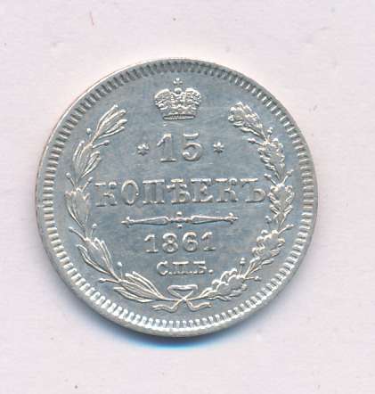 В 1861 году из-за перегруженности Петербургского двора заказы на чеканку части 20, 15 и 10 копеек размещаются на Парижском и Страсбургском монетных дворах. На этих монетах тот же знак двора СПБ, но отсутствует знак минцмейстера.