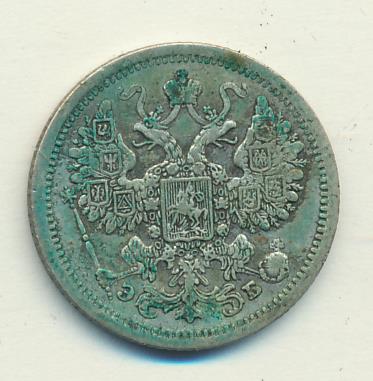 Лицевая сторона — гербовый орел, оборотная —обозначение номинала (15 копеекъ), окруженное венком из лавровой и дубовой ветвей и дата.