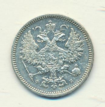 Лицевая сторона — гербовый орел, оборотная —обозначение номинала (10 копеекъ), окруженное венком из лавровой и дубовой ветвей и дата.
