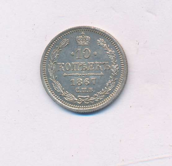 Лицевая сторона — гербовый орел, оборотная —обозначение номинала (10 копеекъ), окруженное венком из лавровой и дубовой ветвей и дата.
